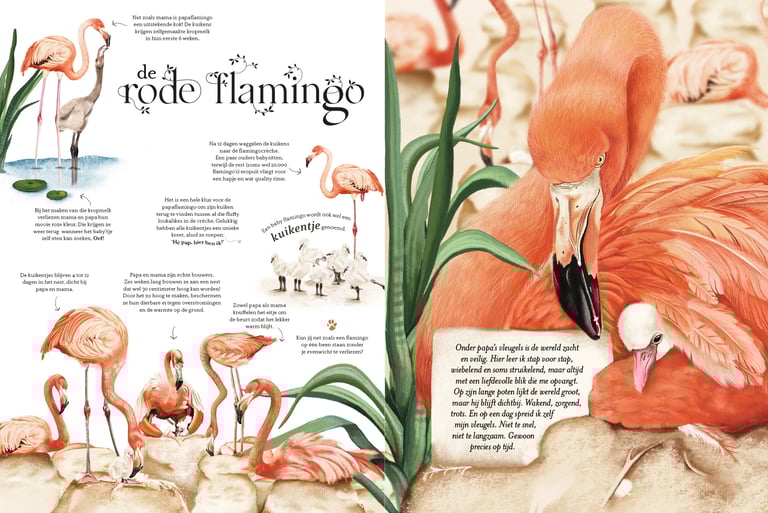 Voorlees momenten uit de 'Wild van ...' reeks met een krokodil en een flamingo