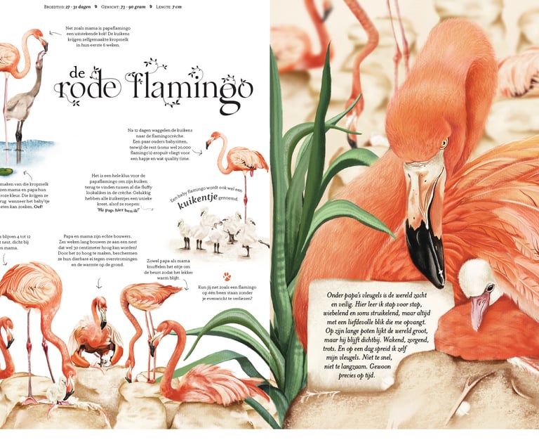 Voorlees momenten uit de 'Wild van ...' reeks met een krokodil en een flamingo